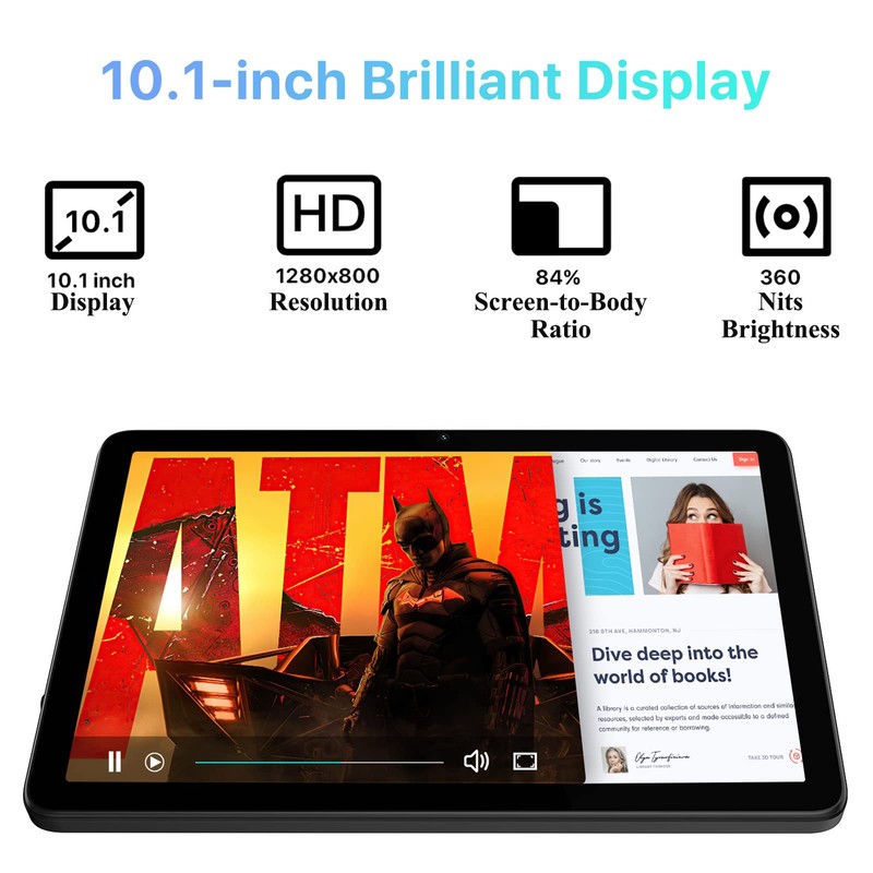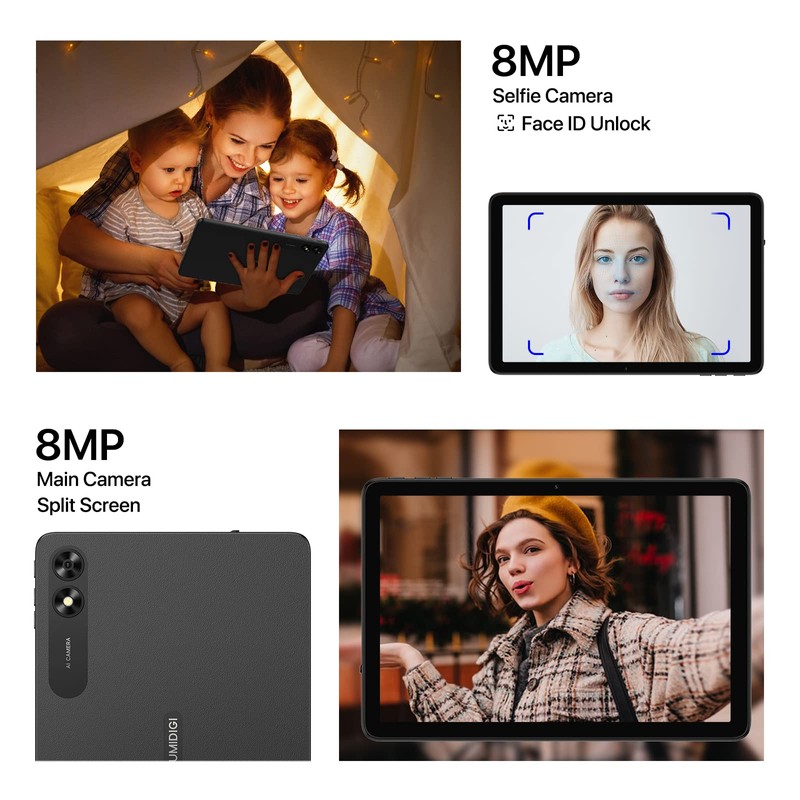 - 【10.1 inch Large Screen +8MP Camera】UMIDIGI G3 Tab has a 10.1-inch display with 1280*800 resolution and a screen-to-body ratio of 84%. With a large dazzling screen, every frame is a visual feast. It also features a 16MP AF rear camera and an 8MP front camera, so you can take pictures and share happy moments with your family.UMIDIGI G3 Tab is equipped with an 8 MP rear camera to help you record beautiful moments. The front 8MP camera provides a clearer portrait for video calls.