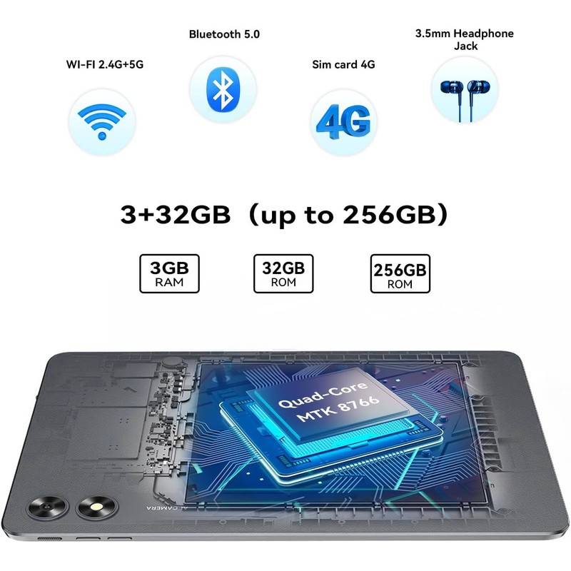 - 【3GB +32GB &256GB Extended】The UMIDIGI G3 Tablet is 3GB +32GB. Running the latest Android 13 operating system, it is more concise and intelligent, with an intuitive and easy-to-use interface and more new features to bring you a smoother, easier, and safer user experience.UMIDIGI G3 Tab sports the quad-core processor MT8766, which contains 4* A53-Cortex of 2.0GHz, and it also features a powerful IMG8300 GPU of 660MHz.