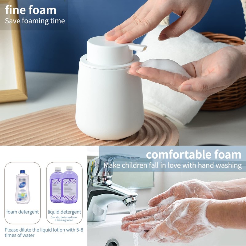 - CERAMIC HAND SOAP DISPENSER - hand soap foam dispenser natural and safe to fill with variety of room-temperature daily use liquids. Reusable,refillable, eco-friendly, recyclable.