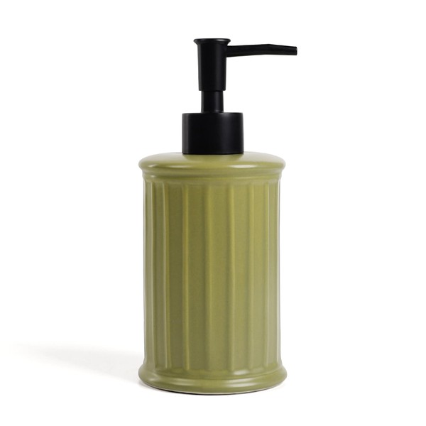 Umlaca Soap Dispenser, Refillable Ceramic Soap Dispenser, 360 ml, Suitable for Kitchen, Bathroom, Liquid Soap Dispenser (Yellowish Green)