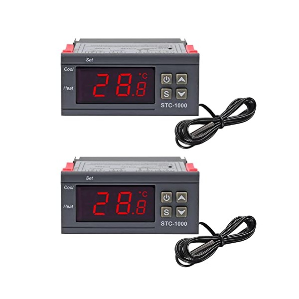 UMLIFE 2 Pack STC-1000 10A DC 12V Digital LED Temperature Controller Thermostat Control Switch 2 Relay Output and NTC 10K Thermistor Sensors Digital Temperature Probe (12V)