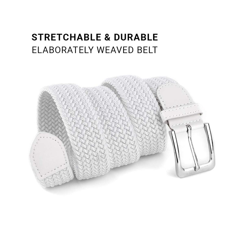 Umo Lorenzo - Cinturones de golf trenzados elásticos sin agujeros, cinturones casuales elásticos para hombres y mujeres, Blanco, Medium (Fits 32-35" Waist)