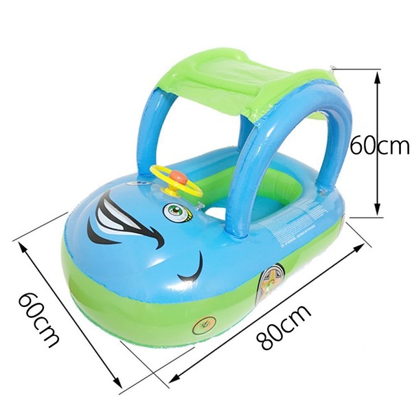 Umora Baby Kids Boat Swim Ring with Handle and Sun Shade (Blue)