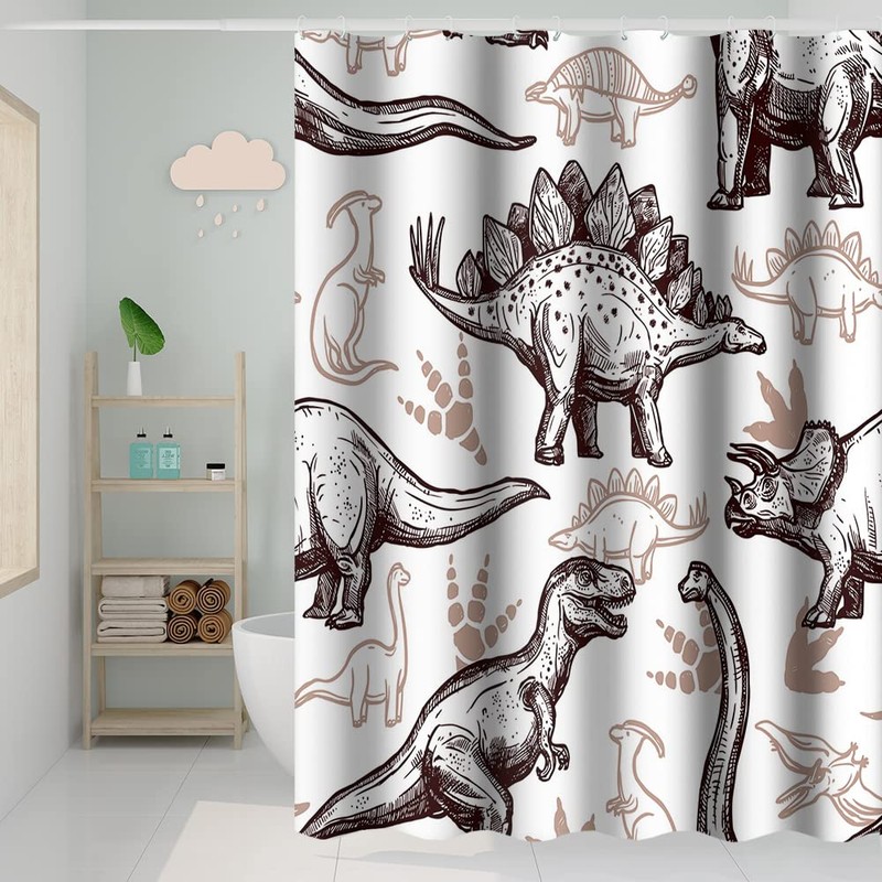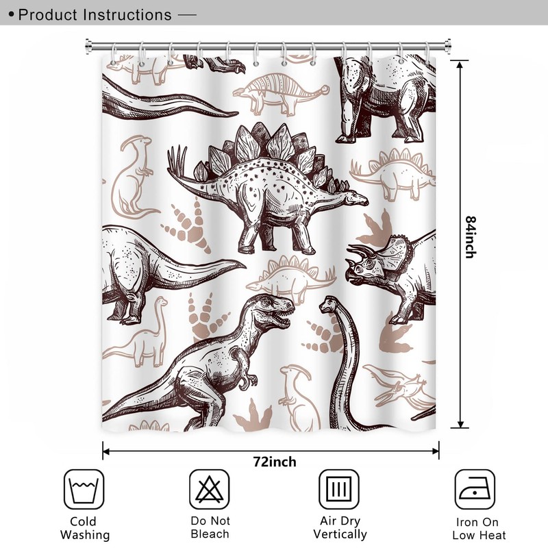 Umpoo Dinosaur World Bathroom Shower Curtain Various Dinosaurs Sketch Pattern...
