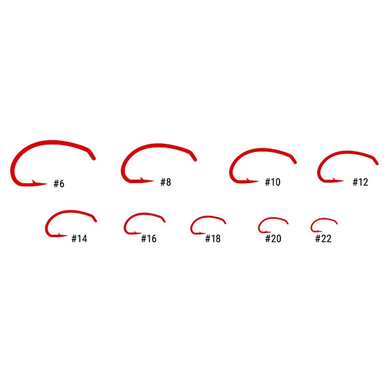 * Curved * 1X Short * 1X Strong * Red * Scuds/Pupa * 50 Pack