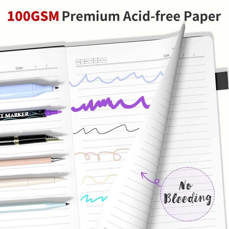 - 100 GSM thick paper: the lined notebook is made of 100gsm paper, which is 20% thicker than normal paper. The thick paper does not bleed through, suitable for most pens. It offers you a comfortable writing experience!
