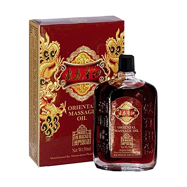 Product descriptionUN HEI TONG Oriental Massage Oil Condition: NEW In Box, Sealed Original Packing Qty.: 1 bottle Volume: 50ml / bottle.IngredientsMethl Salicylate, Menthol Crystal, Borneol, Notoginseng Extract, Carthamus Extract, Shiconix Extract, Angelicase Pubescentis Oil; Ligusticum Chuanxiong Oil; Frankincense Oil, Myrrh Oil, Base and Excipient to 100%DirectionsApply to muscle, joint and bone area and rub it gently for 3-6 times a daySafety WarningDiscontinue use if skin irritation occurs.