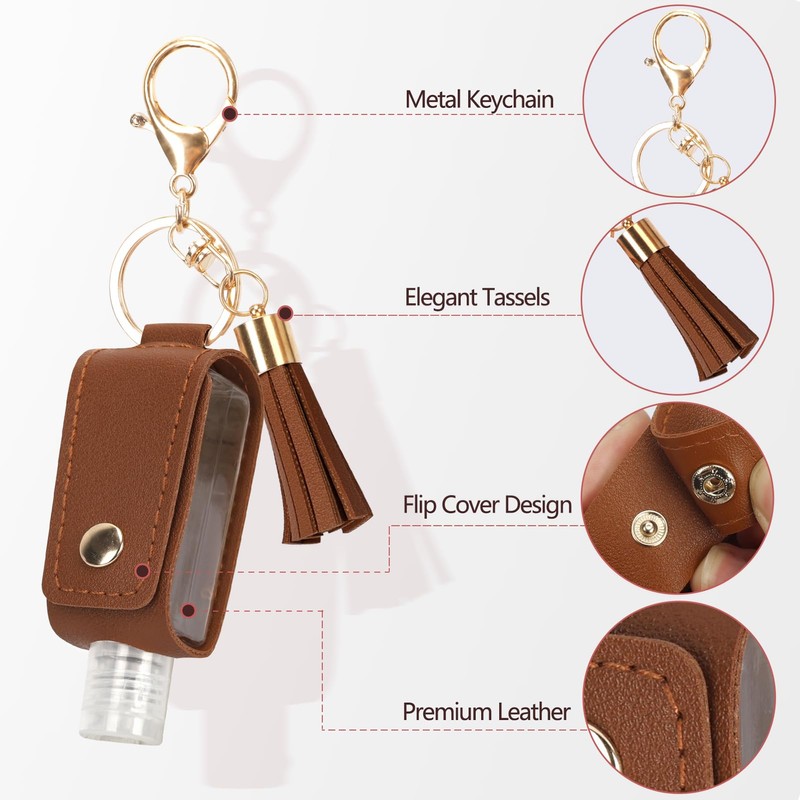 - [Safe Material]: The travel size empty refillable bottle is made of plastic. It is non-toxic, environmentally friendly, safe and not easy to fade. The leather holder keychain is made of faux leather and alloy, durable and not easy to break.