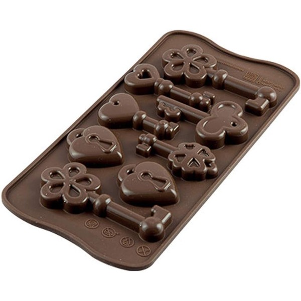 SILIKOMART - Choco Keys is the perfect mould to make detailed and accurate chocolate keys and two romantic padlocks. Making eight tasty chocolates will be easier than ever thanks to the recipe included in each confection: impeccable result is guaranteed! Size: 107 x 21 h 17 mm Volume: 96 ml