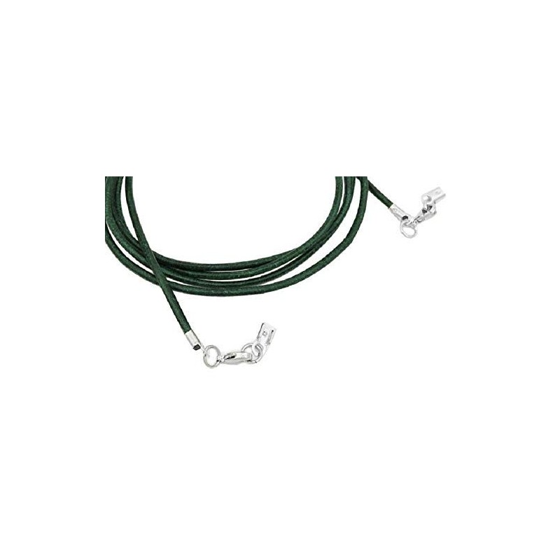 Unbespielt Leather Cord Necklace Dark Green Women Men Two Lobster Clasp Silver-Coloured 1 m Long Can Be Shortened, Leather