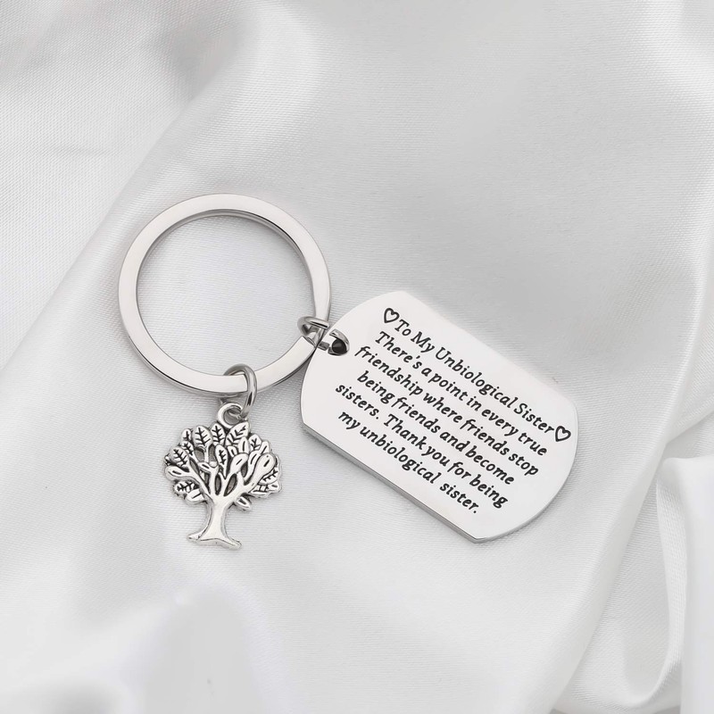 - ❥ Unbiological Sister Gifts ❥ This keychain with the tree of life pendant and engraved with warm words. A special gift for your best friend. Thank You For Being My Unbiological Sister.