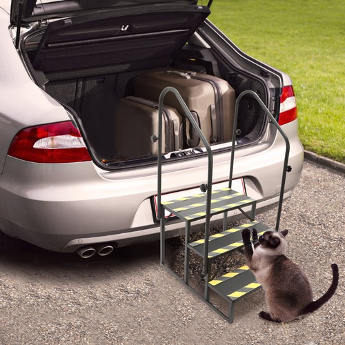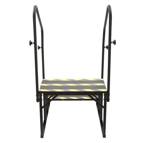 The RV step made of Q235 steel provides a solid step for you and your family to get up and down higher with ease. It has a solid frame with a weight capacity of up to 450 lbs per level, so you can use it with confidence. Meanwhile, the reflective strips and the handrails on both sides prevent slipping while providing a boost to get on and off the step.