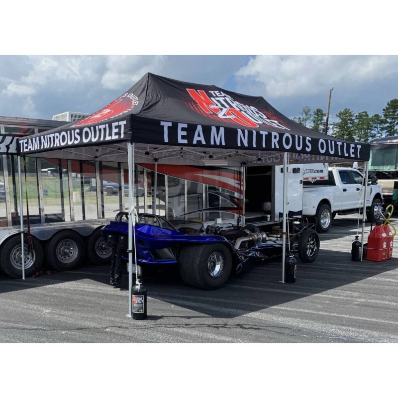 Nitrous Outlet Tent Anchors are made from repurposed nitrous bottles that were traded into the Nitrous Outlet Bottle trade in program. The bottles have been sand blasted, powder coated, and re-labeled.
