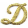 1 1/8" Fancy Metallic Gold Script Cursive Alphabet Letter D Embroidered Patch