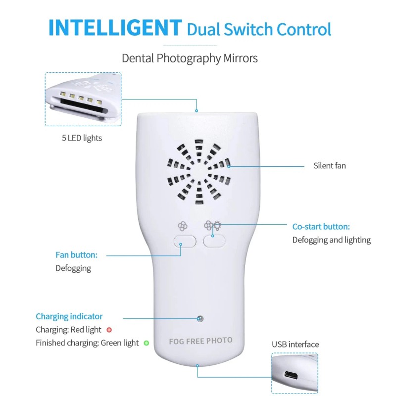 Reflectors, matching action of three ifferet reflector.It is made of 8K mirror 304 stainless steel material, stamping process and highly polished finish.The reflector is uniquely designed by experienced clinical experts, and the turning angle distance at the back has been repeatedly demonstrated.It conforms to the Asian's design, and can fully open the soft tissues of the cheeks at the back of the mouth, so that the joints can be photographed completely and clearly.The reflector is connected to the host with a plug-in design.The main unit has the functions of blowing and defogging and light-assisted focusing, so that the reflecting plate into the mouth, not because of the temperature.At the same time, there arem, enough LED light sources to allow the photography equipment to successfully focus.