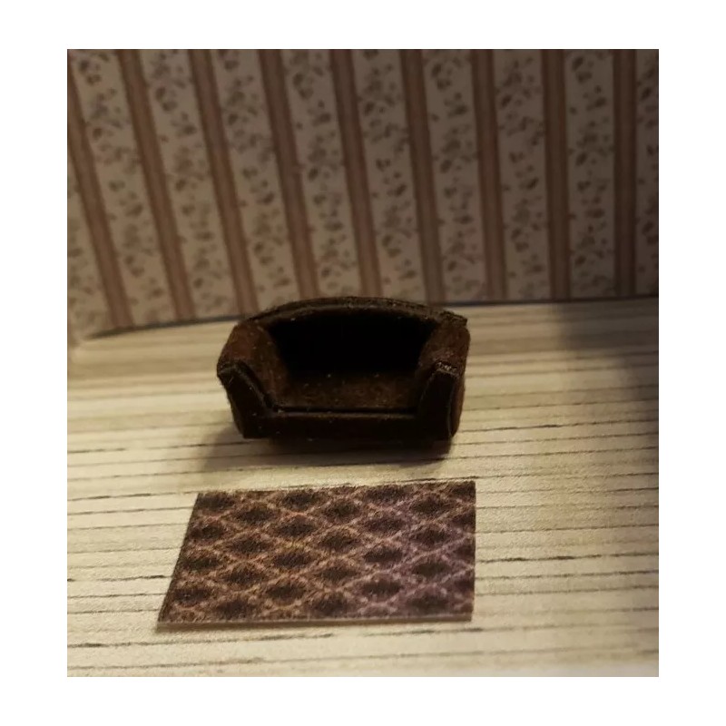 Unbranded 1:144 Miniature Rolled Arm Sofa and 2 Chairs with Area Rug