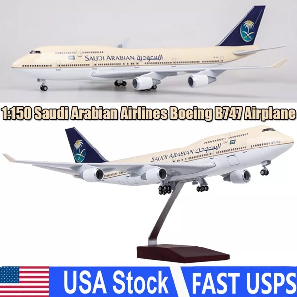 Unbranded 1:150 Saudi Arabian Airlines Boeing B747 Airplane Model Decor W/ Light &Wheel