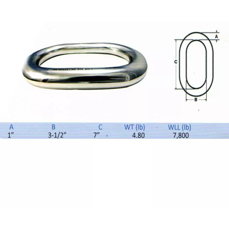 Unbranded 1 Inch Marine Master Link Welded SS316 With Working Load Limit 7,800 Pounds
