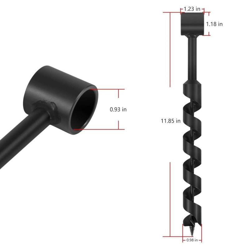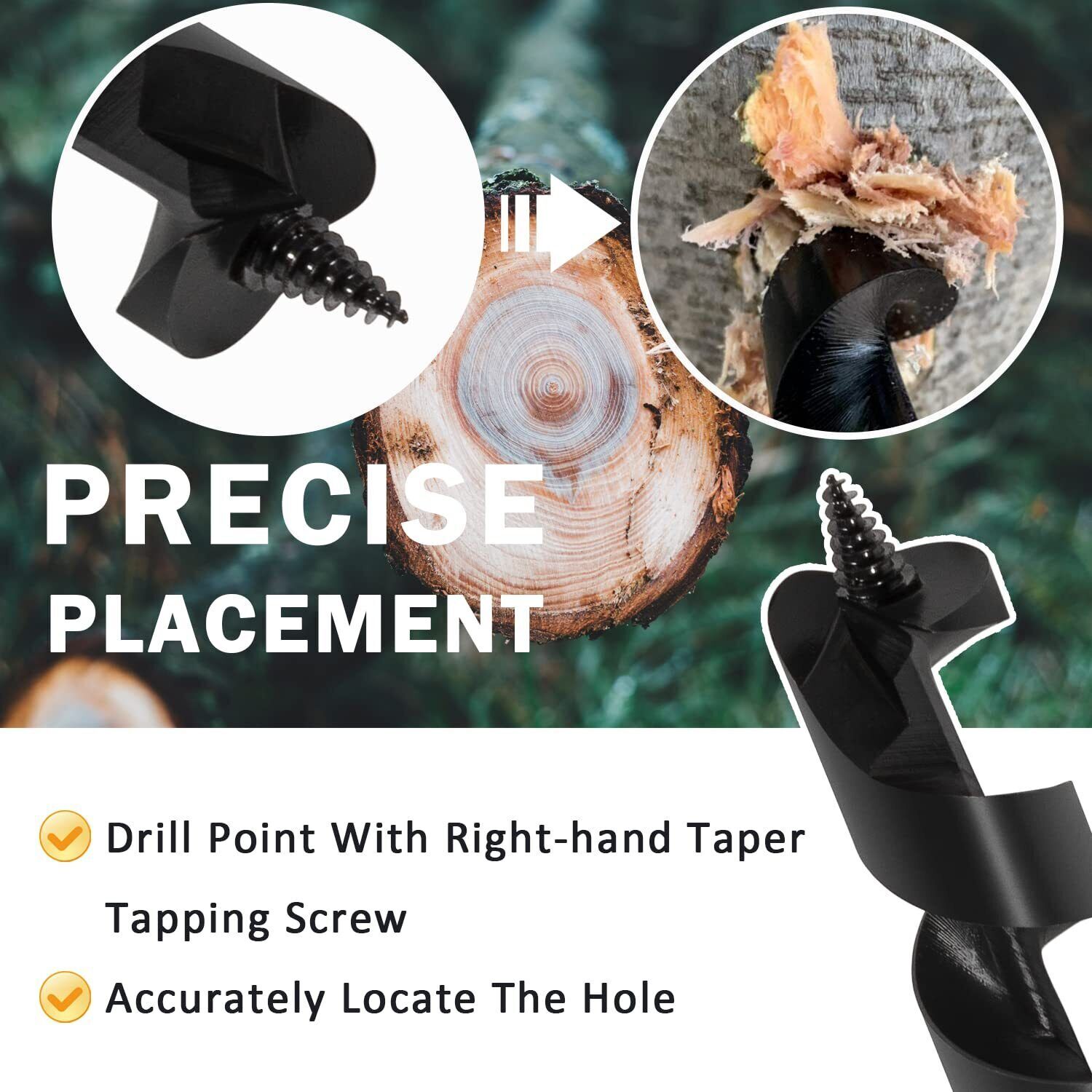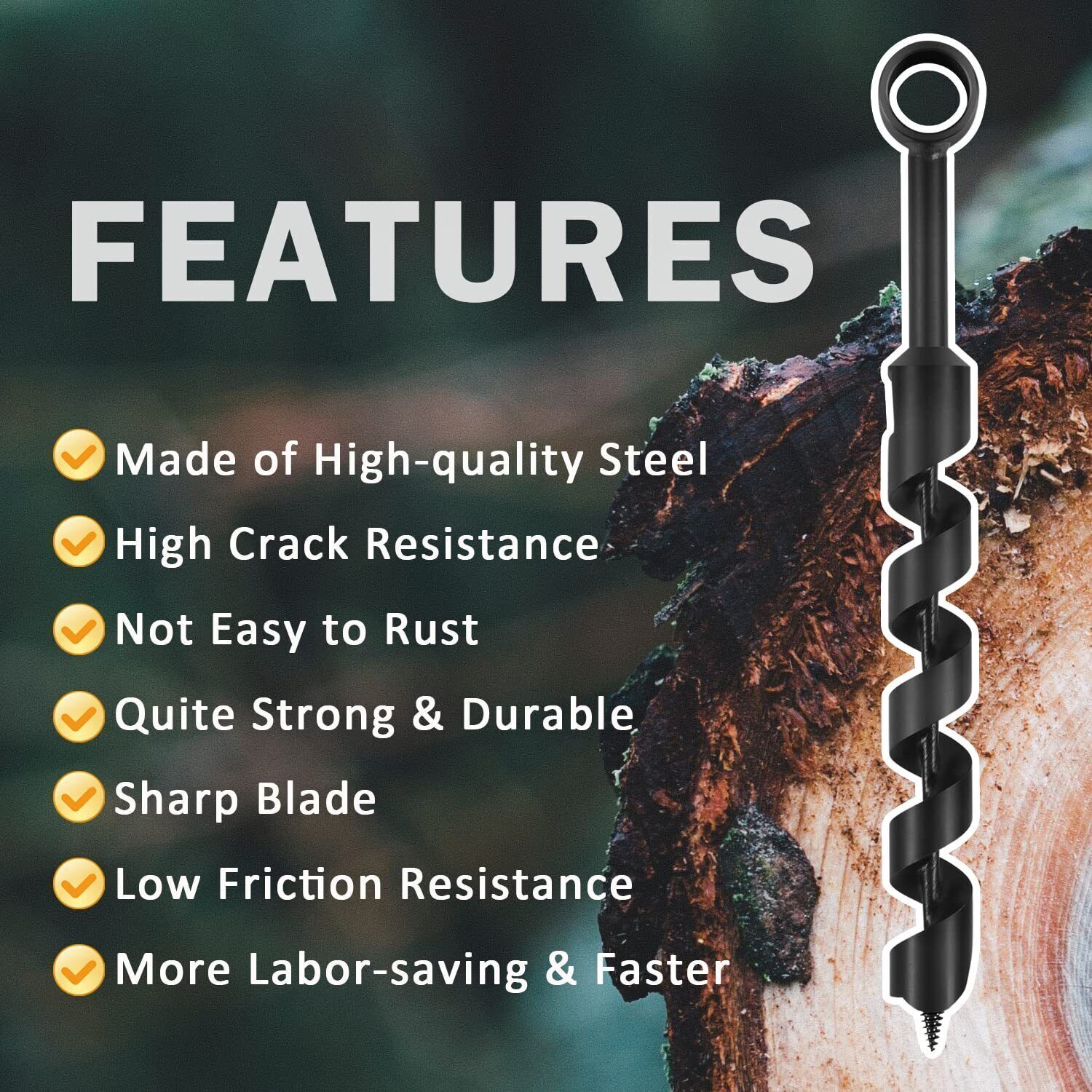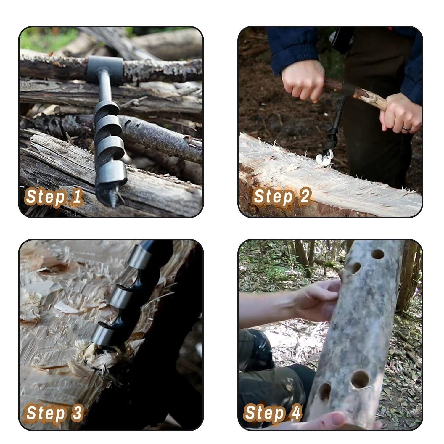 DR-Auto Bushcraft Auger Drill is professionally milled and welded to bore the perfect hole. Razor sharp 1" steel drill bit drives through the hardest of woods with ease (green or dry). Cuts an impressive 11" deep hole without crushing your fingers or knuckles, thanks to the 2.4" Shank.