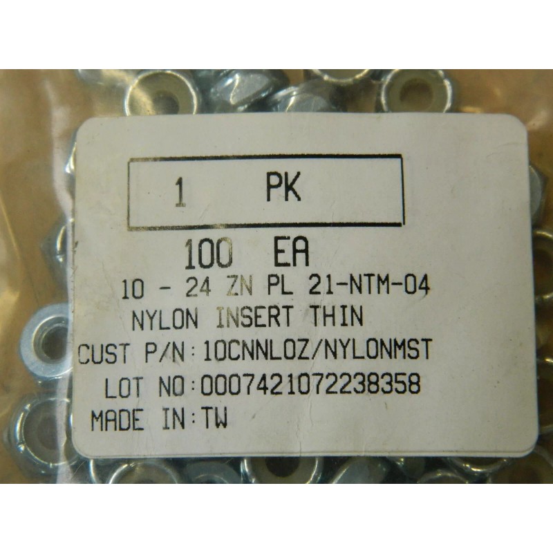 Unbranded 10-24 HEX Nylock Nylon Imsert Zinc Plated Steel Nut - 100 pieces