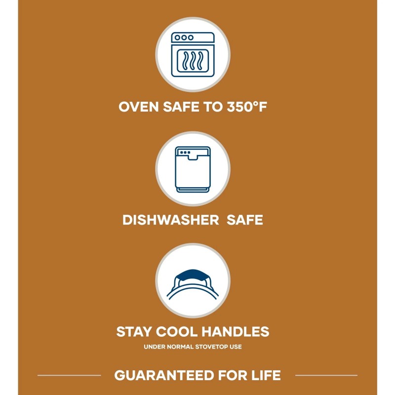 Cookware is made without PFAS, PFOA, PTFE, lead, or cadmium* for pots and pans that are safe to cook on and don't sacrifice an ounce of quality along the way (*Product design does not involve intentionally adding to the product any of these substances which may otherwise be present in the environment)