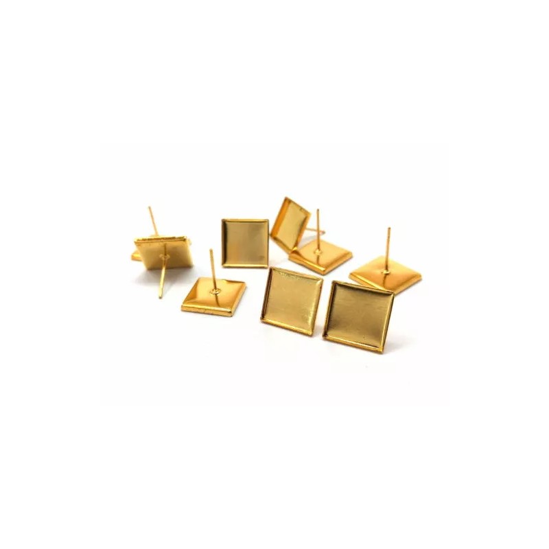 Unbranded 10 pcs. Gold Plated Square Earring Posts Studs Settings Cabochons Tacks 13x13mm