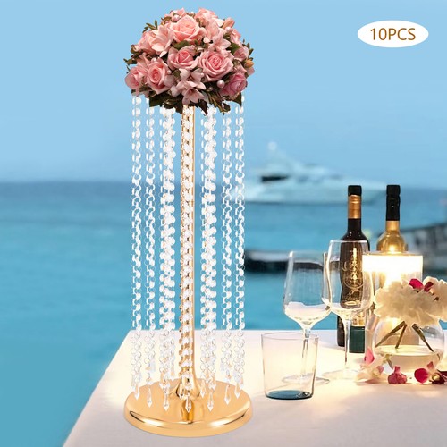 Unbranded 10 PCS Metal Gold Flower Vase Wedding Table Centerpieces Crystal Flower Stand