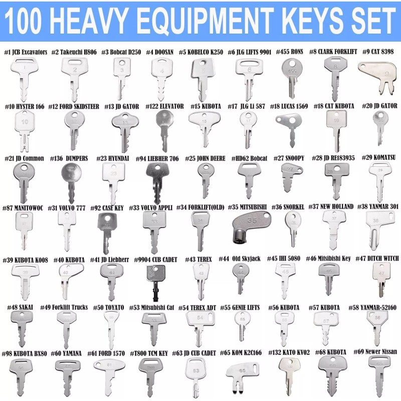 100 Heavy Construction Equipment Key Set Fit at JCB Komatsu Case JD Volvo Bobcat