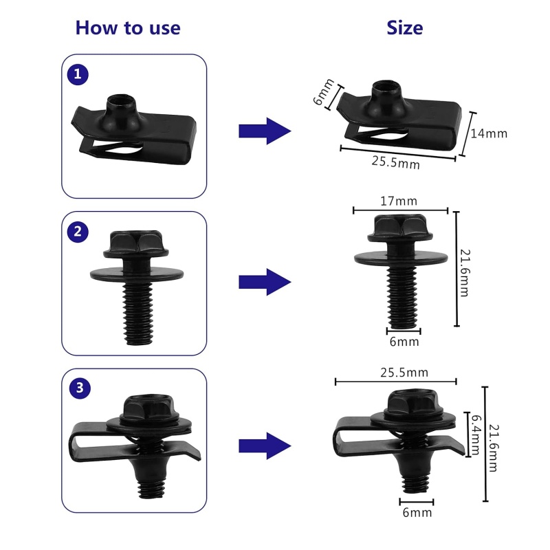 WIDE APPLICATION: Universal bumper Clips Rivets can be used on cars, truck, motorcycles, buses, trains, planes, caravans, etc