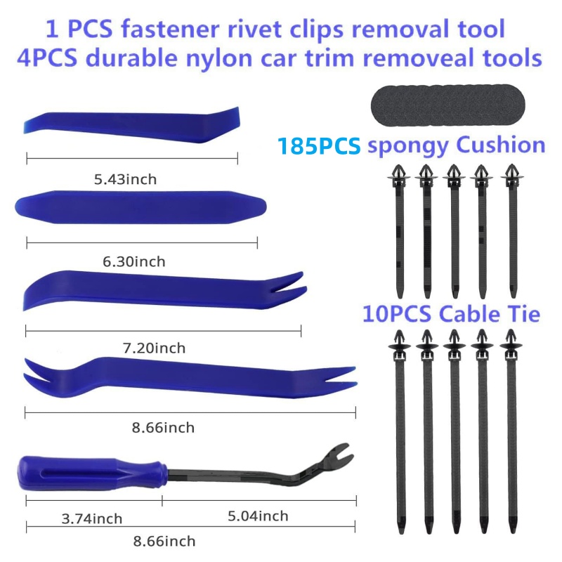BONUS ACCESSORIES: 5 remover tool and 10 cable ties in different size for quick and easy remove clips, 185x sponge gasket avoid causing damage or scratch to your loved car