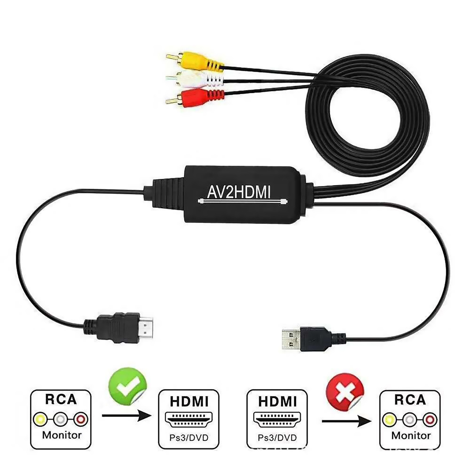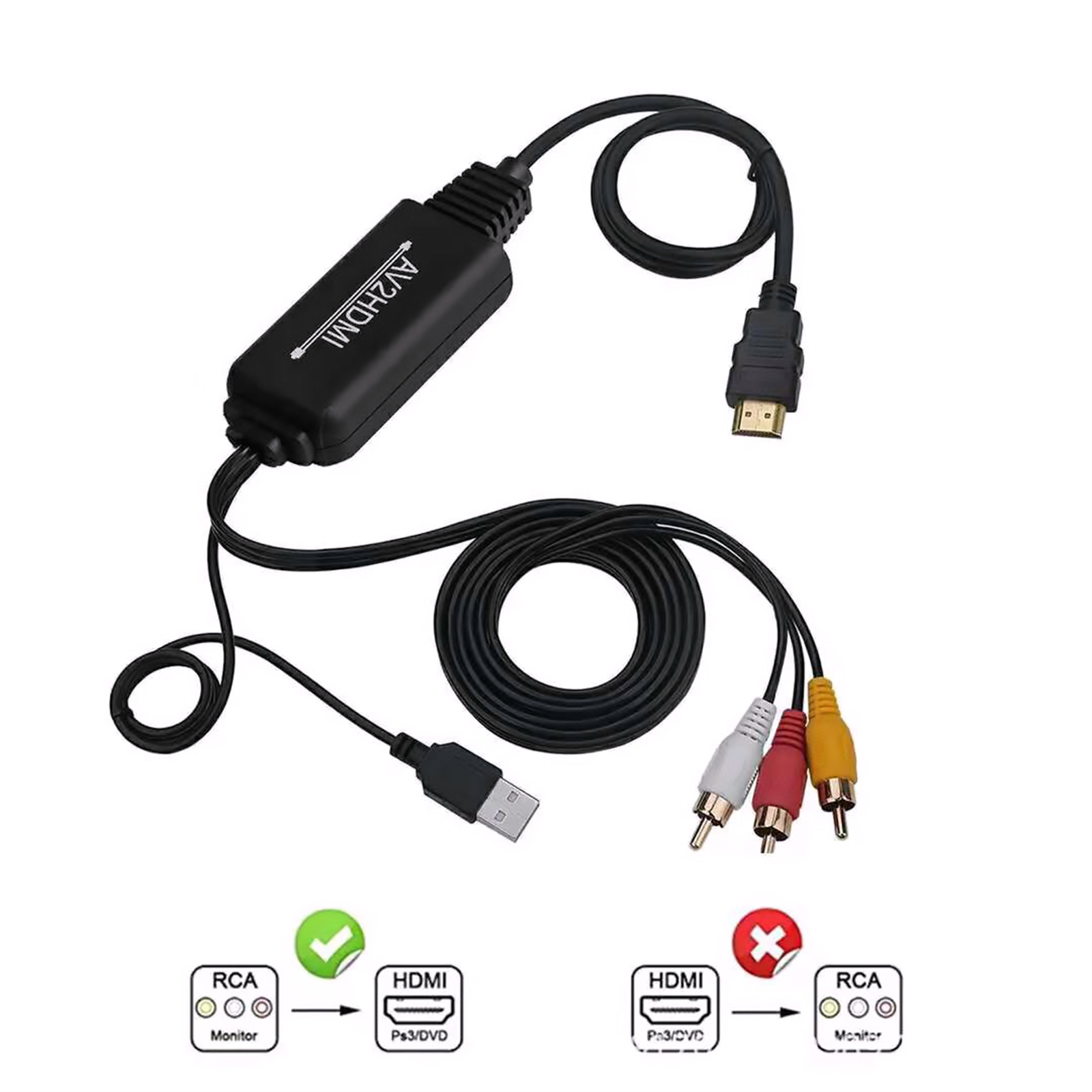 Unbranded 1080P 720P Composite Audio Video CVBS To HDMI Converter RCA HDMI Converter Cable