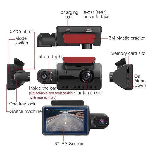 Unbranded 1080P Dual Lens Car DVR Dash Cam Video Recorder G-Sensor Front and Inside Camera