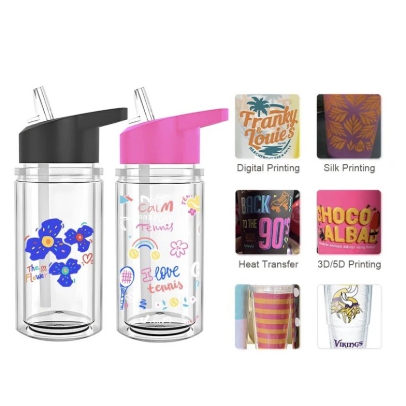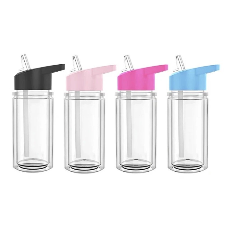 Unbranded 10oz Kids Snow Globe Plastic Double Wall Drinking Can With Nozzle Handle Lidcups