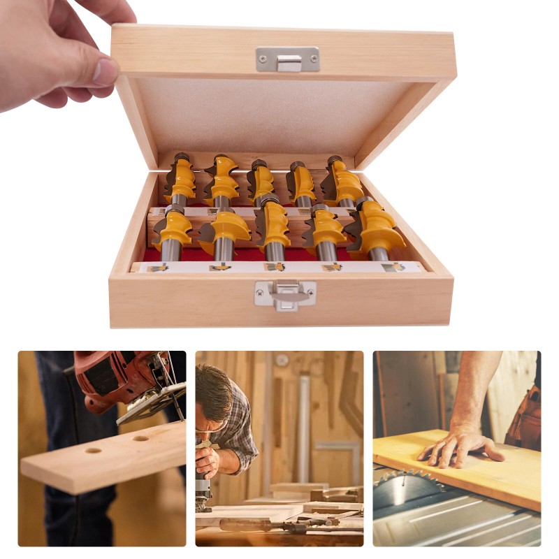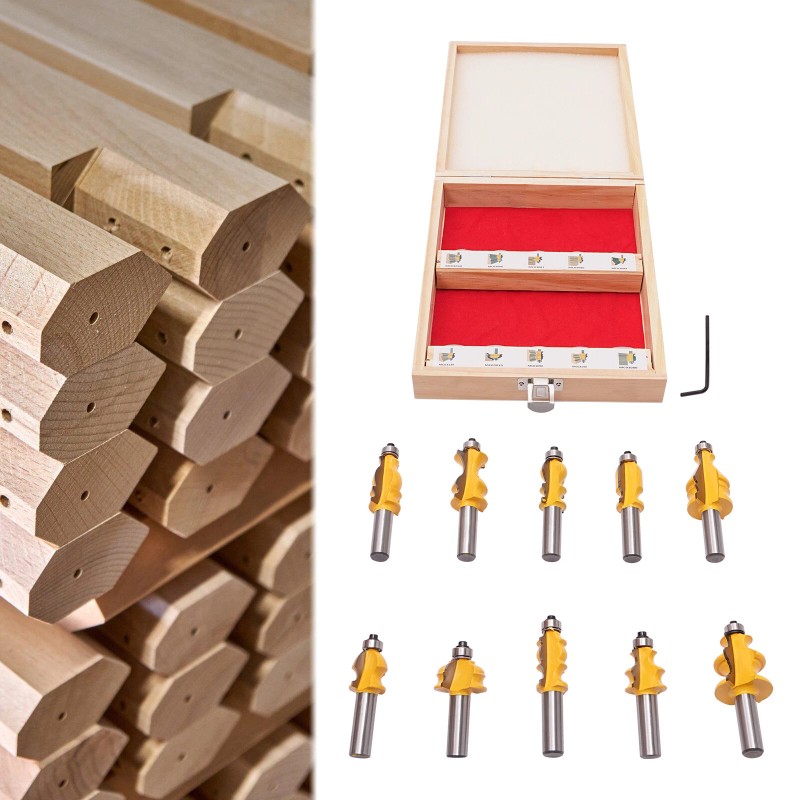 Unbranded 10pcs 1/2" Shank Molding Router Bit Set Architectural Specialty Woodworking Tool