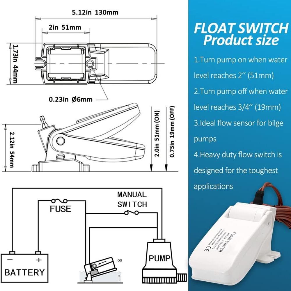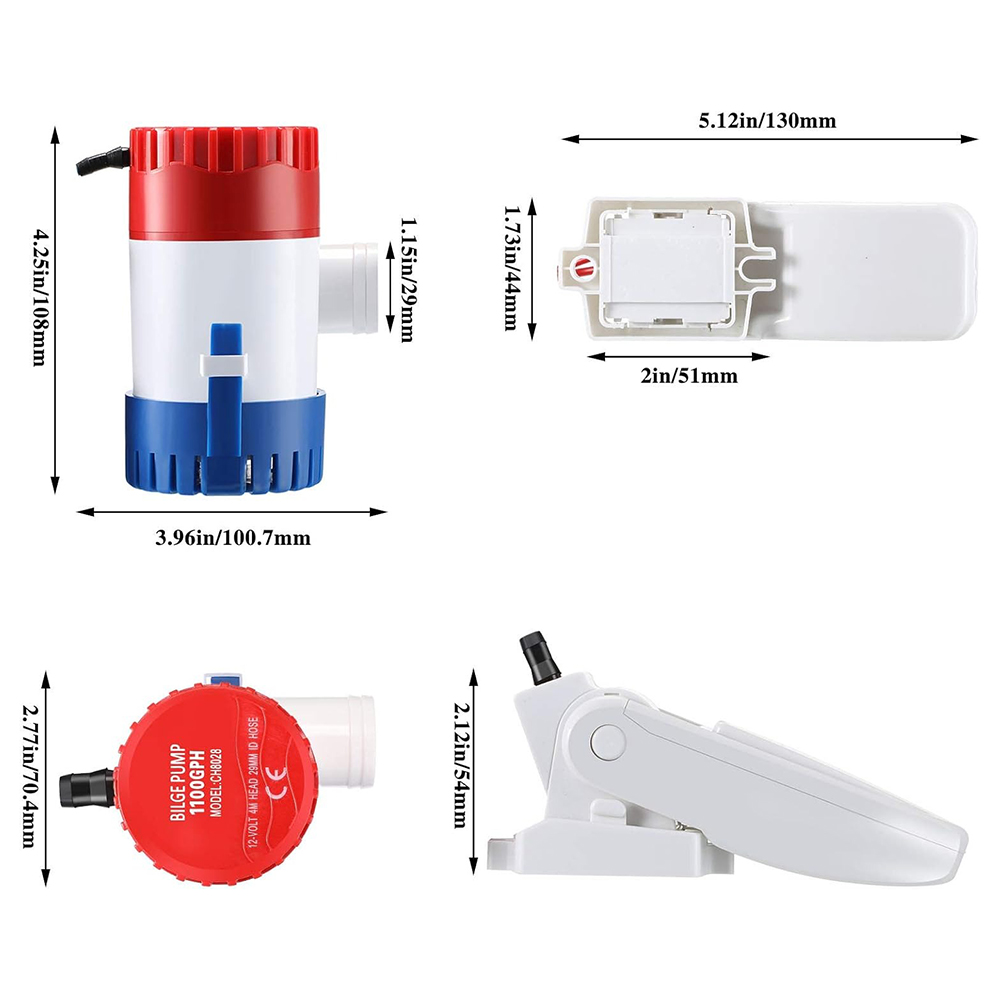 1100GPH 12V For Boat Marine Submersible Bilge Sump Water Pump w/ Float Switch
