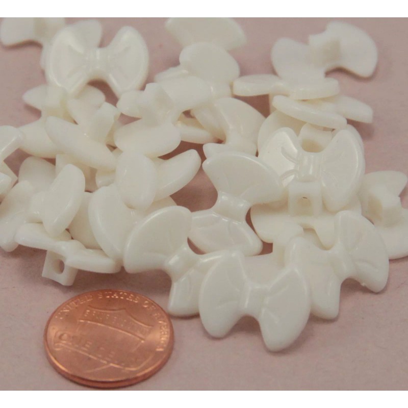 Up for sale is a lot of 12 cream plastic bow tie buttons 11/16" 17mm.
