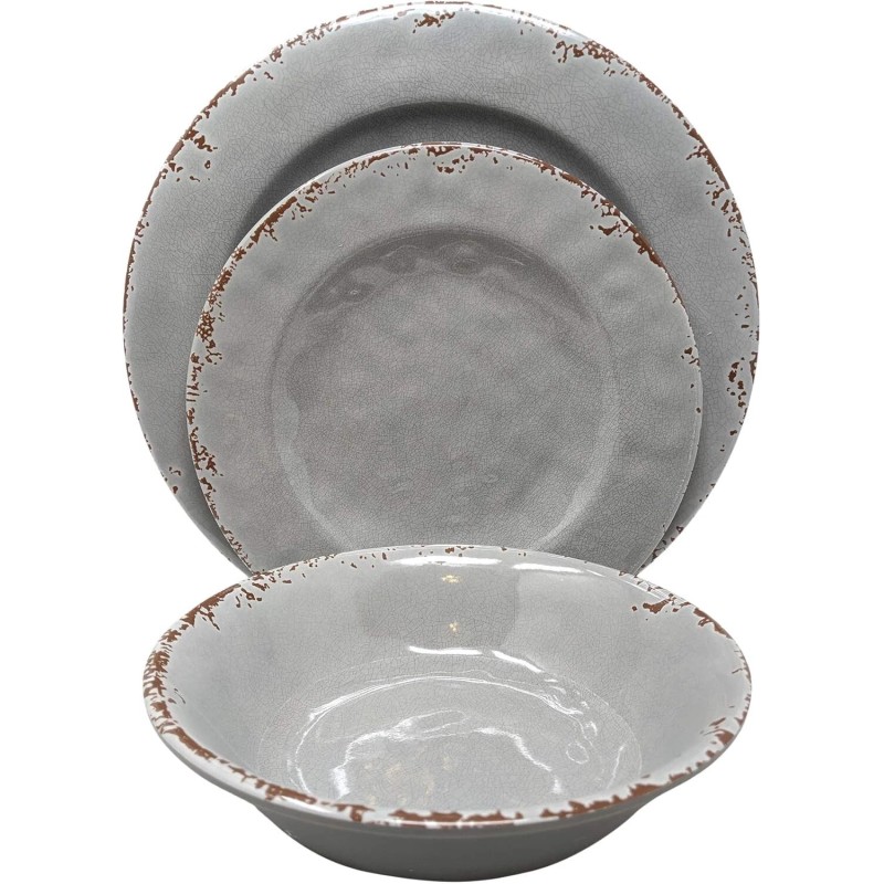 12 Piece Rustic Farmhouse Melamine Dinnerware Set, Service for 4 Gray