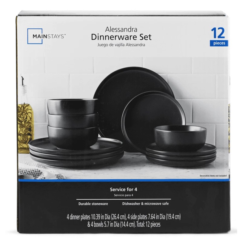 - Mainstays 12-Piece Ale Matte Black Stoneware Dinnerware Set
