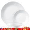 Unbranded 12 Piece White Dinnerware Set Embossed Glass Microwave Dishwasher Safe New