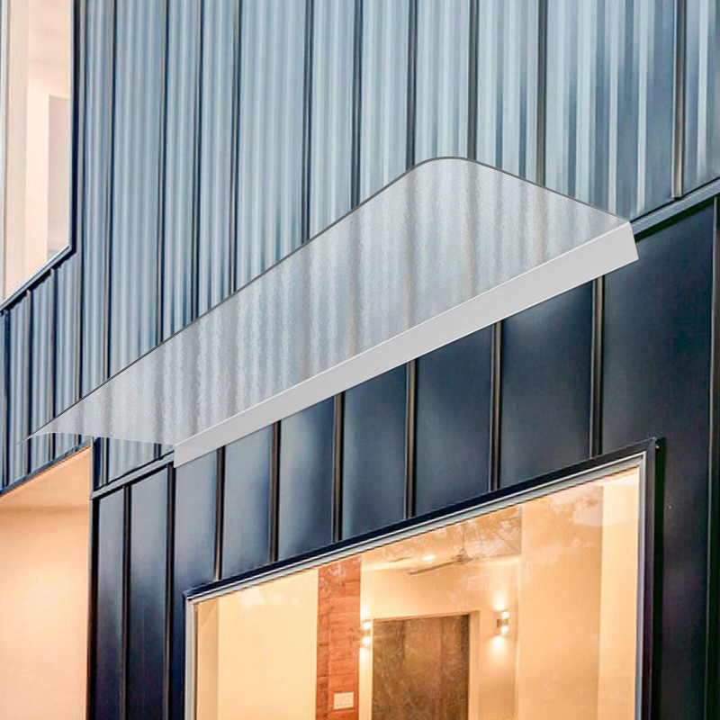Simple and Modern: The graceful curve and frosted design make this awning canopy show a beauty that combines hardness and softness, adding modernity and simplicity to your home decor.