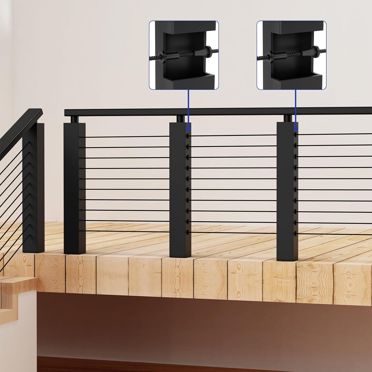 【Feature】This high quality metal is built to withstand extreme coastal and corrosive environments. Choose between kits for metal post or kits for wood posts. Black stainless steel protector sleeve is easy to install and provides a stylish and contemporary finish to any project, whether used indoors or outdoors, residential or commercial.
