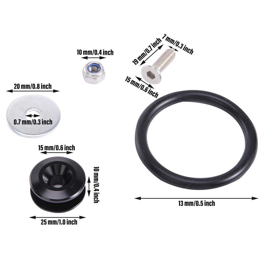 - Dimensions: Aluminum Fastener: 25x10mm, Washer: 20mm, Nut: 10mm, Bolt: 7x19mm