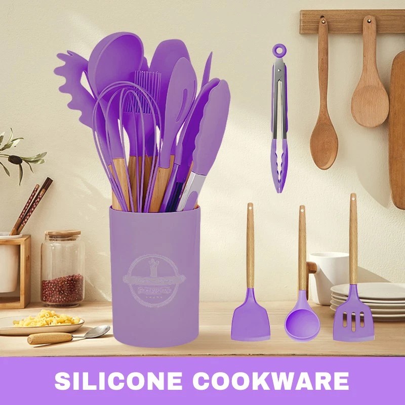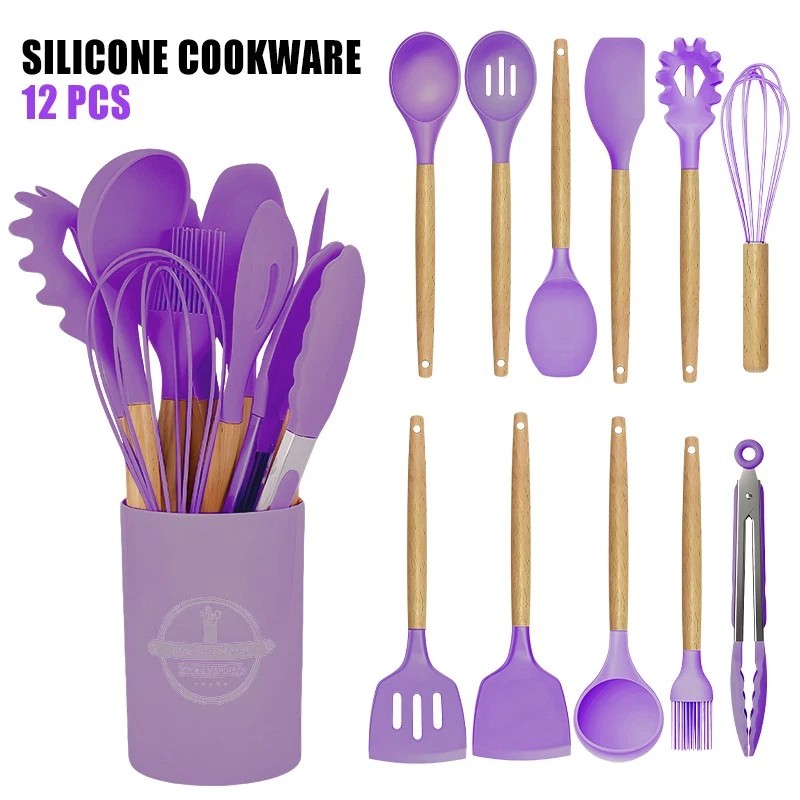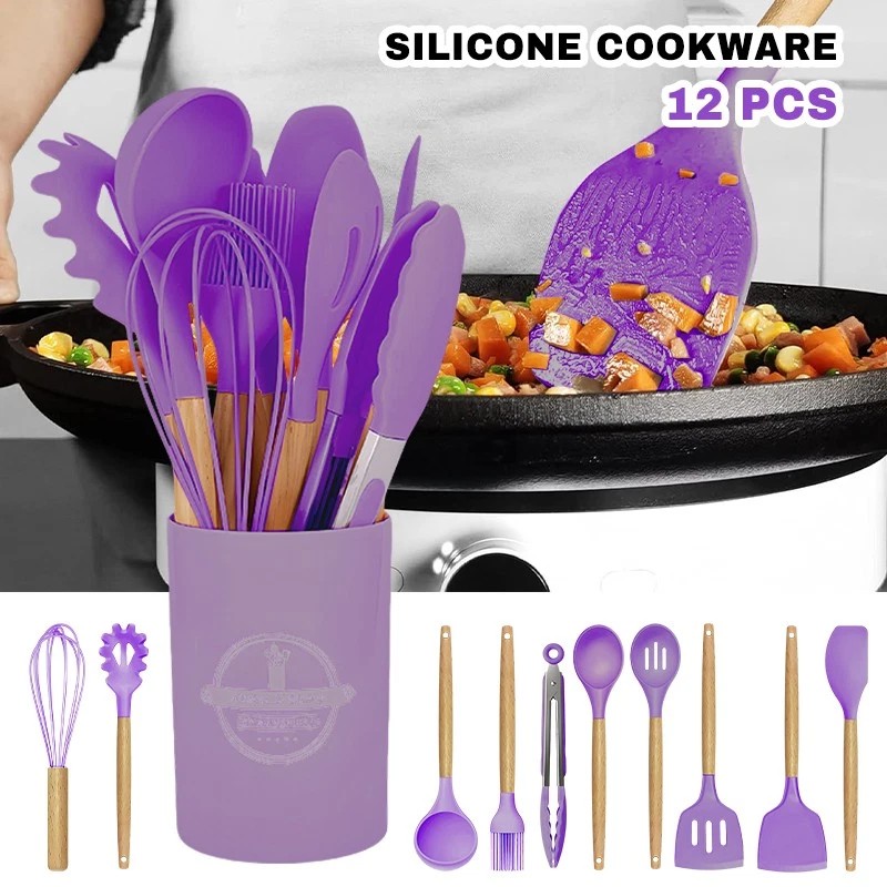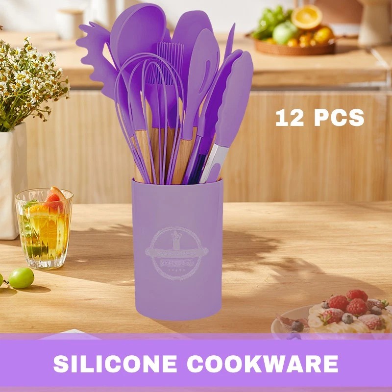 Description:All-in-One Purple Cookware Set: Cook, bake, and serve with our 12pcs lavender kitchen utensils set silicone. It has spatulas, tongs, whisk, spoons, and more - ideal for mixing, flipping, and serving