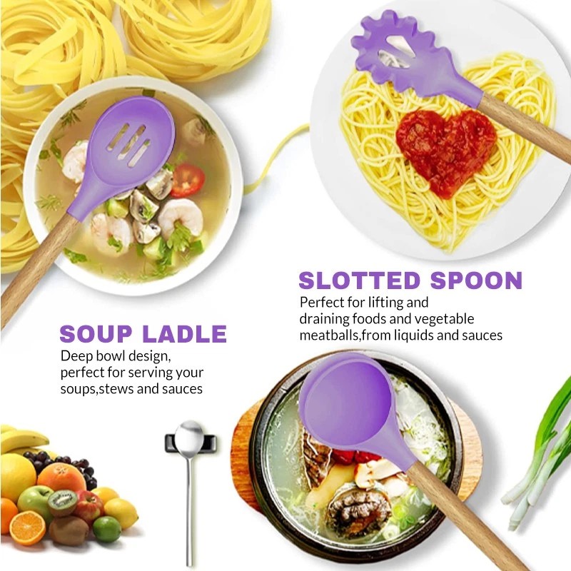 Built for Durability Purple Kitchen Set Utensils: With fade-resistant beech handles and tightly connected heads our lavender kitchen utensils set silicone is ready for lifelong use without breaking