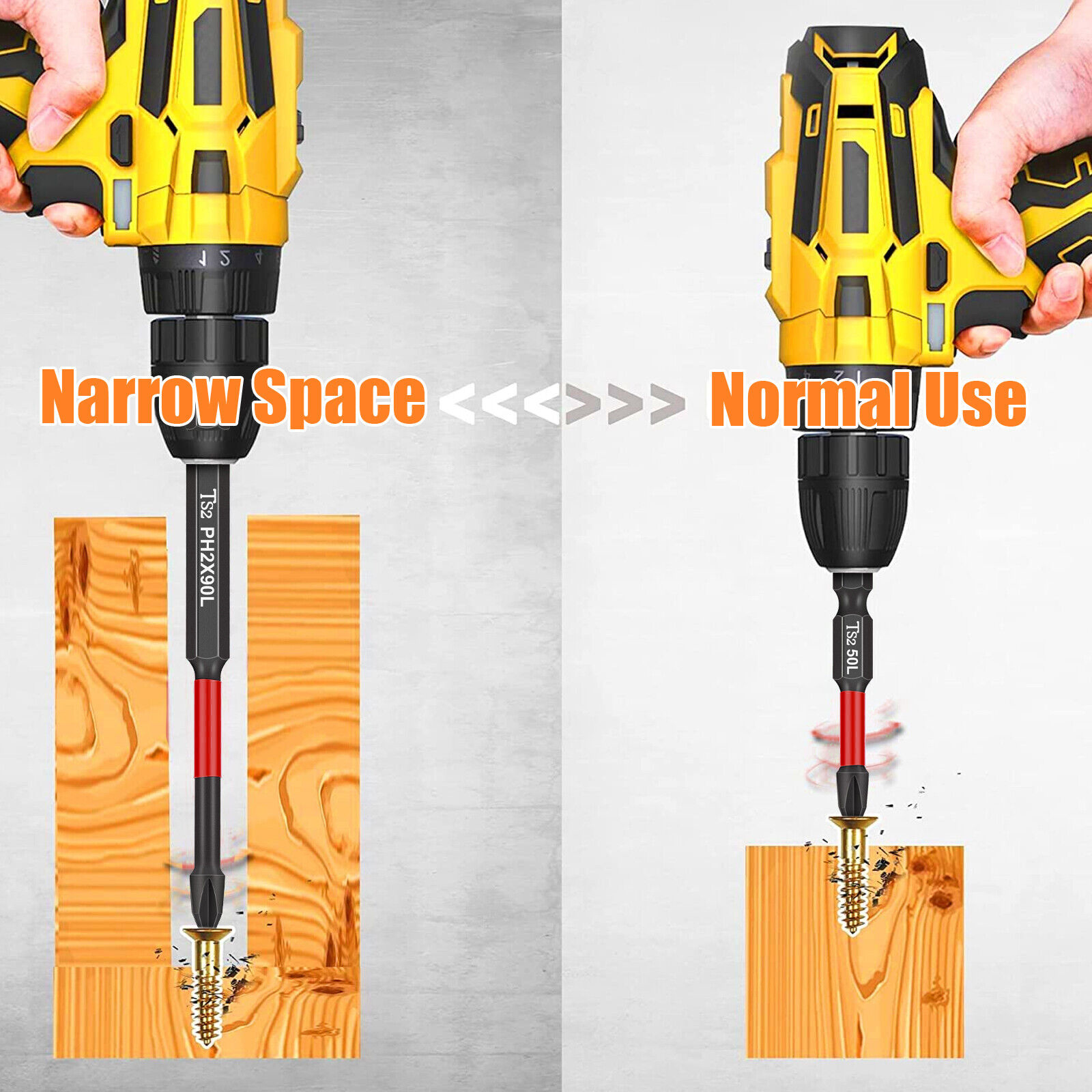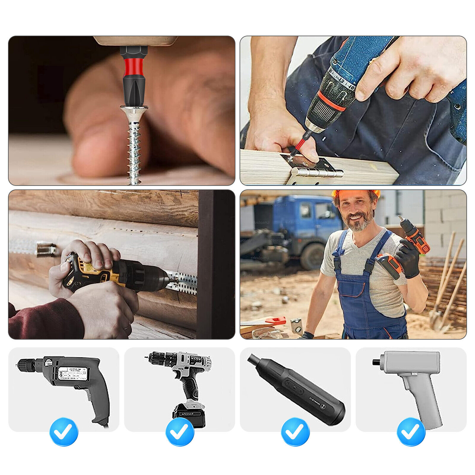 These long screwdriver bits are compatible with various tools, including impact drivers, electric screwdrivers, manual screwdrivers, 1/4" driver screwdrivers, corded drills, cordless drills, electric screwdrivers, hand screwdrivers, and electric drills.