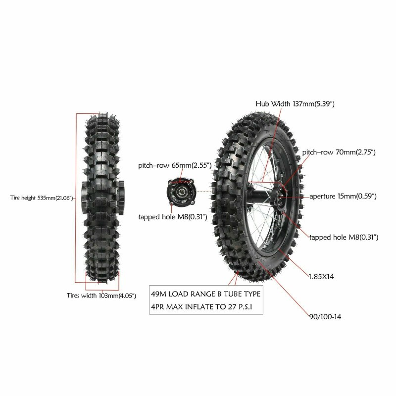 Unbranded 14" Rear Wheel 90/100-14 Tire Rim for Dirt Bike SSR Taotao CRF 70/110/125 150cc