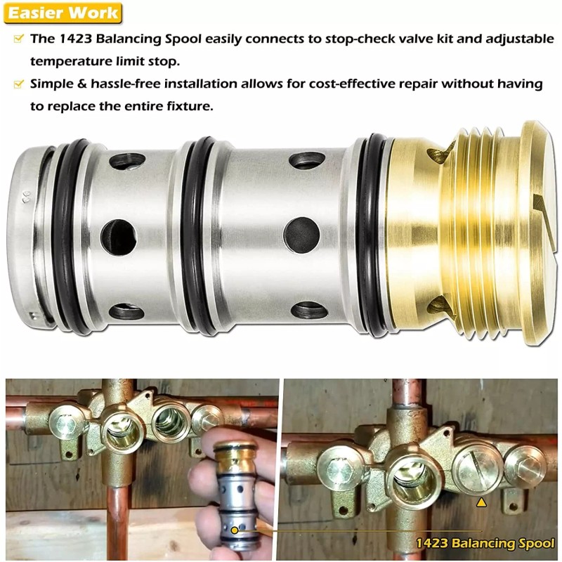 Allows users to directly replace a faulty balancing spool to keep their tub or shower faucet maintaining comfortable water temperature.