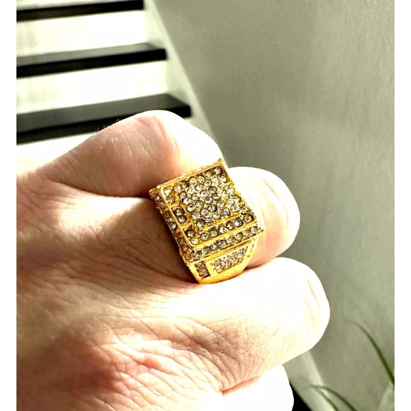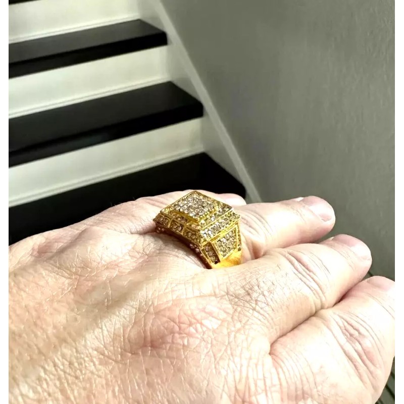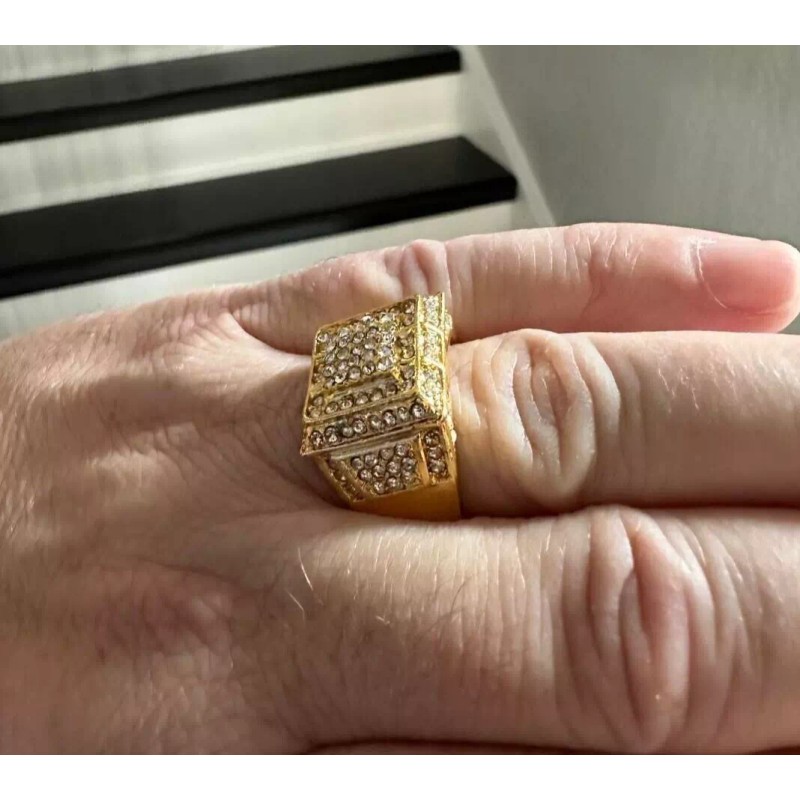 Unbranded 14K Gold Plated Iced CZ Cubic Zirconia Cluster Ring Size 10 Fits Most USA