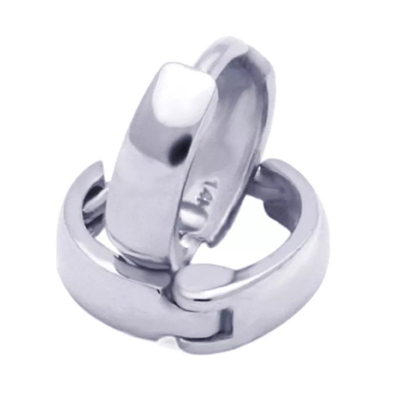 14K White Gold 2 mm Width Domed Small Plain 6 mm Length Huggie Hoop Earrings