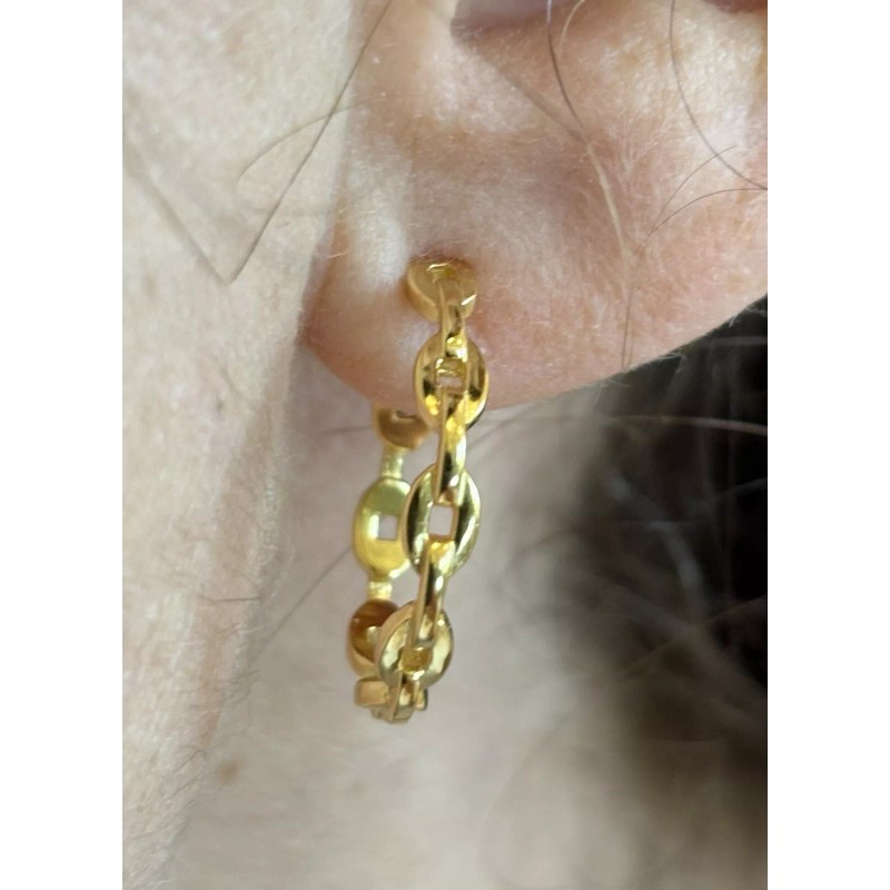 14k yellow gold plated over solid 925 Sterling Silver Anchor Chain Mariner Link Hoop Earrings